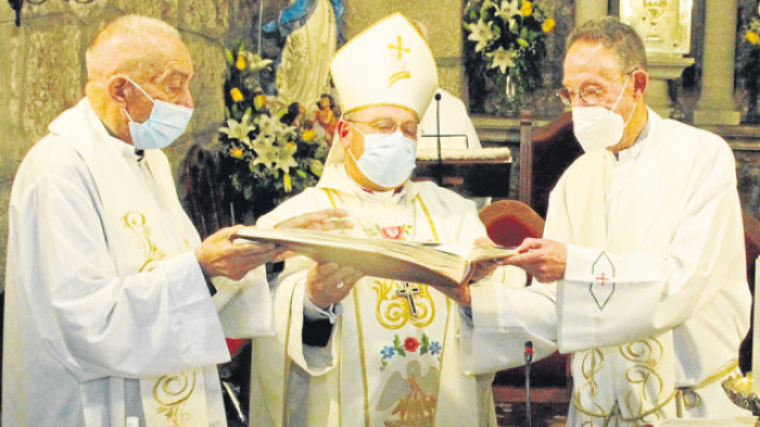 Para José Crespo Iglesias no hay secretos entre los vecinos de Oubiña. Después de cincuenta años como cura de esta parroquia de Cambados pocas cosas, por no decir ninguna, se le escapan de lo que acontece en la vida diaria de la zona. Con motivo de este singular aniversario, los feligreses, encabezados por Adrián, Sandra, Rosita y Héctor, le organizaron un homenaje en el que, por supuesto, no faltó la misa y en ella la sorpresa de una serie de regalos, eso sí, relacionados con el ejercicio del sacerdocio. Lleva ya 57 años en la iglesia y es todo un mérito, pero también abre un debate sobre el relevo generacional. FOTO: Homenaje a José Crespo en Oubiña | G. Salgado