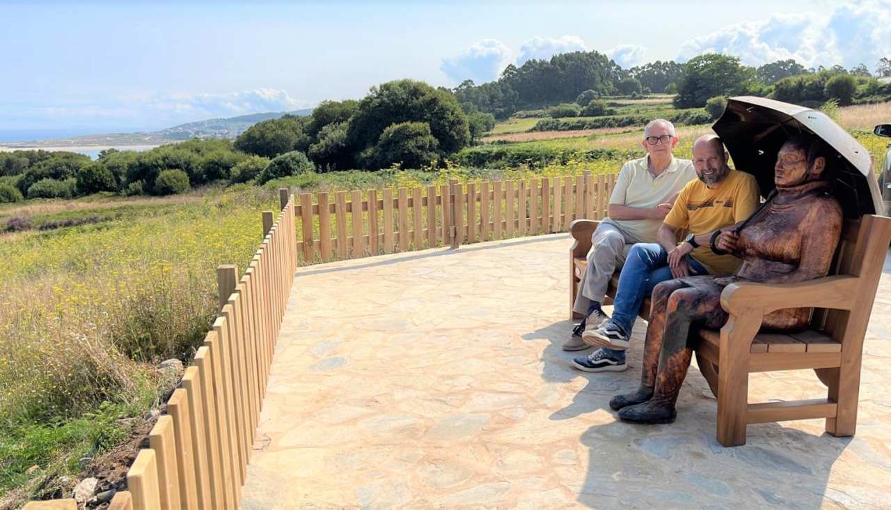 El renovado mirador de Outeiro, en la parroquia carballesa de Lema, cuenta con un nuevo reclamo: un banco escultórico que no solo permite disfrutar de forma relajada de las incomparables vistas del espacio natural de Baldaio y de las Illas Sisargas, sino que sirve también de homenaje a las mujeres del mar.
