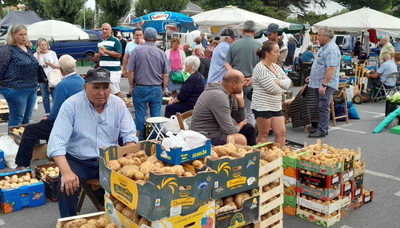 En cuanto a los productos, cabe destacar la patata en un mercado de huerta y proximidad como es el de Paiosaco. Abundaba la patata procedente de e toda la comarca, dominando la de Coristanco, con variedad y tonalidades distintas –blanca y roja– , con precios oscilantes entre 1 y 1,70 euros el kilo. La cosecha temprana está resultando de excelente calidad, la plantada antes de mediados de abril, pero de ahí en adelante se ha visto afectada y lastrada por la falta de agua.
