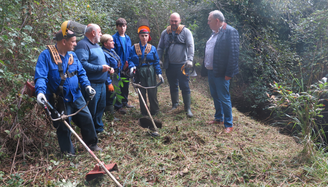 El alcalde, José Manuel López Varela, y el concejal de Medio Ambiente, José Ramón Martínez Barbeito, se reunieron con personal de las cuadrillas en el propio río a la altura de Quenxe para interesarse por el resultado de las actuaciones