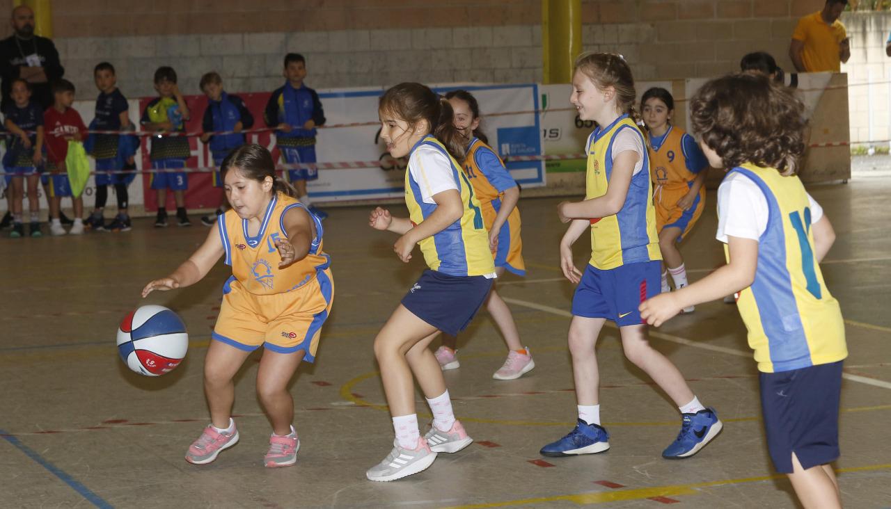 Cuatrocientos veinticinco niños con edades comprendidas entre los 5 y los 8 años y pertenecientes a 36 clubes de distintas partes de Galicia se lo pasaron ayer en grande en Carballo con motivo de la celebración del Pequebasket.