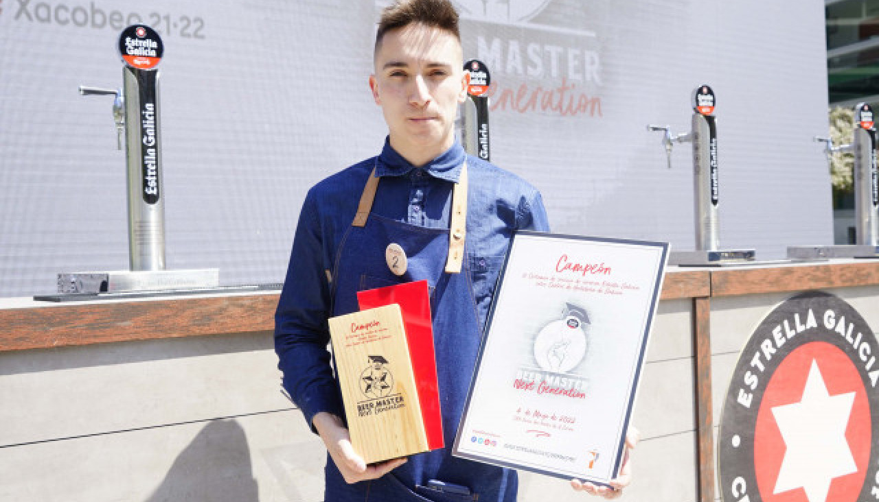 Adrián López, del I.E.S. San Xillao en Lugo, se alzó con el premio otorgado por Estrella Galicia en el certamen que ayer reunió en el CIFP Paseo das Pontes (A Coruña) a alumnos de Centros de hostelería de todos los puntos de Galicia con el objetivo de ejecutar un servicio perfecto y demostrar sus conocimientos sobre cultura de cerveza. De este modo, el estudiante de Lugo recibió de manos de Carmen Jul, como representante de la Consellería de Educación, el reconocimiento que le corona como el mejor representante del futuro de la hostelería gallega gracias a sus habilidades cerveceras.