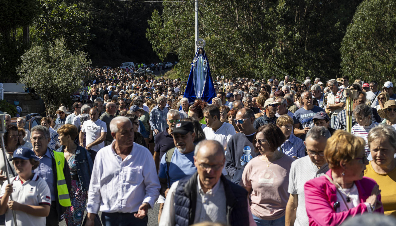 La villa marinera de Caión, en A Laracha, culminó este domingo su popular romería de los Milagros, después de dos semanas de cultos. La procesión de bajada de la Virgen puso el broche de oro a esta celebración, que arrancaba el 1 de septiembre con la comitiva en sentido inverso, la subida desde el tempo parroquial hasta el santuario.