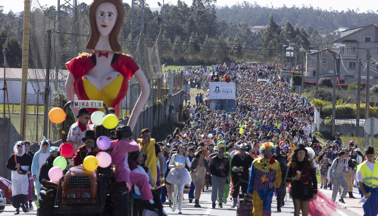 El Entroido llega a su fin en la Costa da Morte, aunque todavía quedan los platos fuertes de este fin de semana. El evento más multitudinario será este sábado en la Mikaela de Buño, donde se espera una avalancha de gente para despedir a la exuberante muñeca, tras su particular recorrido por el pueblo.