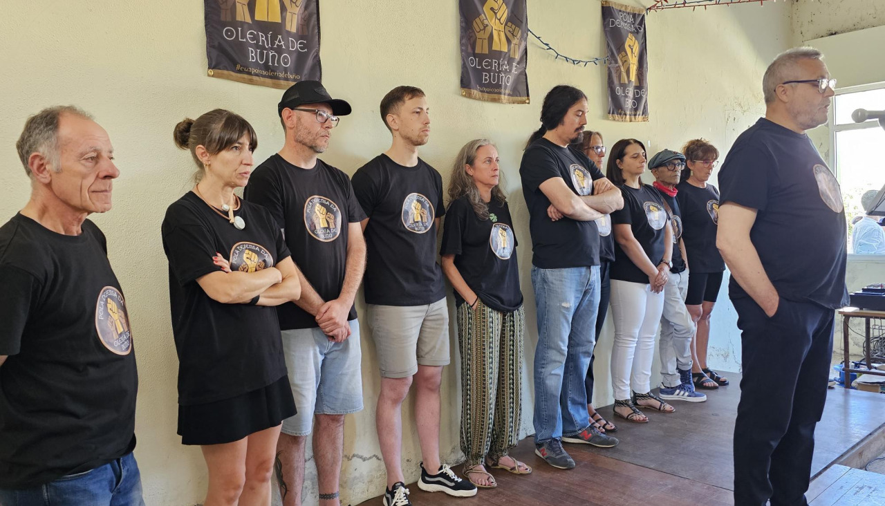 El teleclub de Buño se quedó pequeño para acoger la lectura del manifiesto de los oleiros para justificar su decisión de no participar en la Mostra de este año.