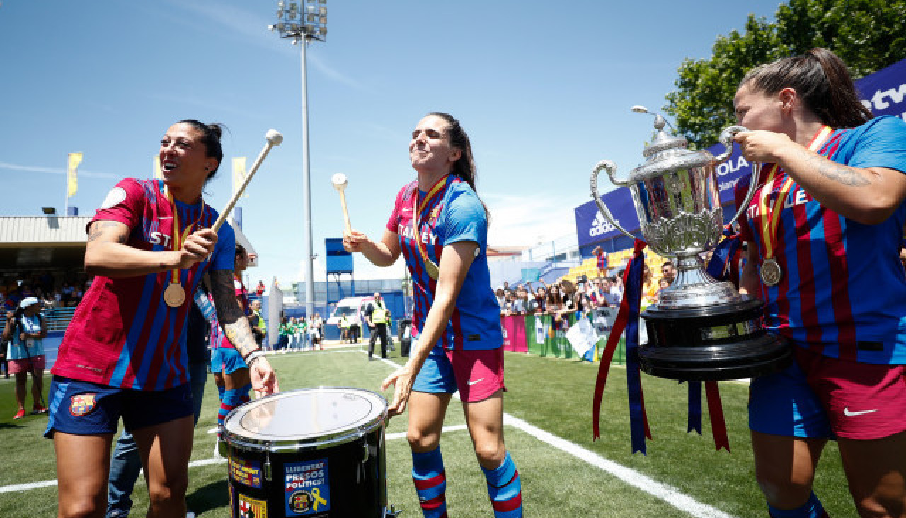 El Barça, que ya había celebrado la Supercopa de España y la Primera Iberdrola, completó el triplete nacional de la temporada al revalidar el título de la Copa de la Reina tras derrotar con autoridad prevista al Sporting de Huelva (6-1) en Alcorcón.