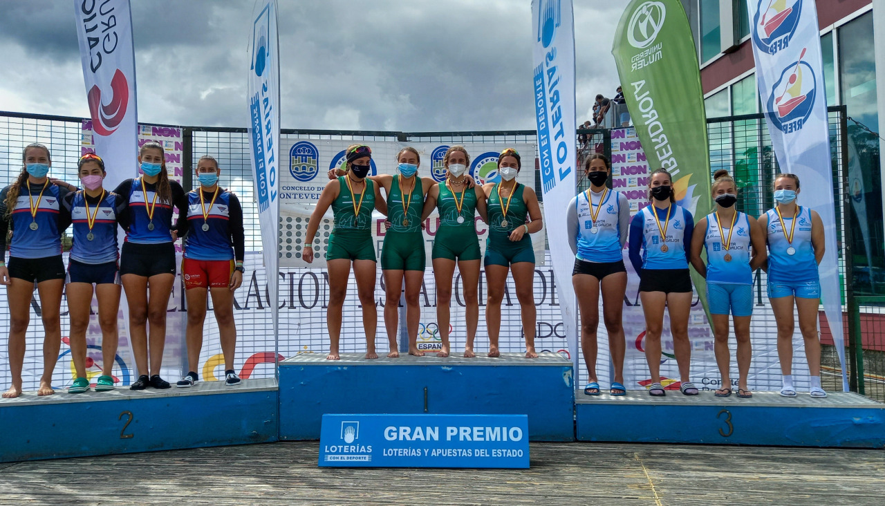 Con tres medallas de bronce y varios puestos en las finales A terminó el Náutico Firrete su actuación en el Campeonato de España de sprint olímpico que el pasado fin de semana tuvo lugar en Verducido, Pontevedra. La entidad eumesa contó con la participación de dieciséis palistas, de los cuales más de la mitad subieron al podio. Y es que dos de las embarcaciones de equipo del club local consiguieron la tercera posición en este Estatal. Así, el C-4 sénior 200 metros conformado por Andrea Piñeiro, Cristina Vázquez, Ana González y Rebeca Vázquez se hizo con el bronce en Pontevedra, aunque si bien lejos del subcampeonato logrado por el Labradores.
